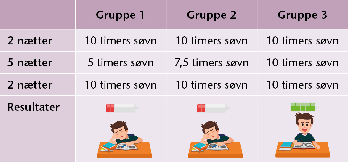 Forsøgsdesign for undersøgelsen af hvordan blåt lys påvirker søvnen.